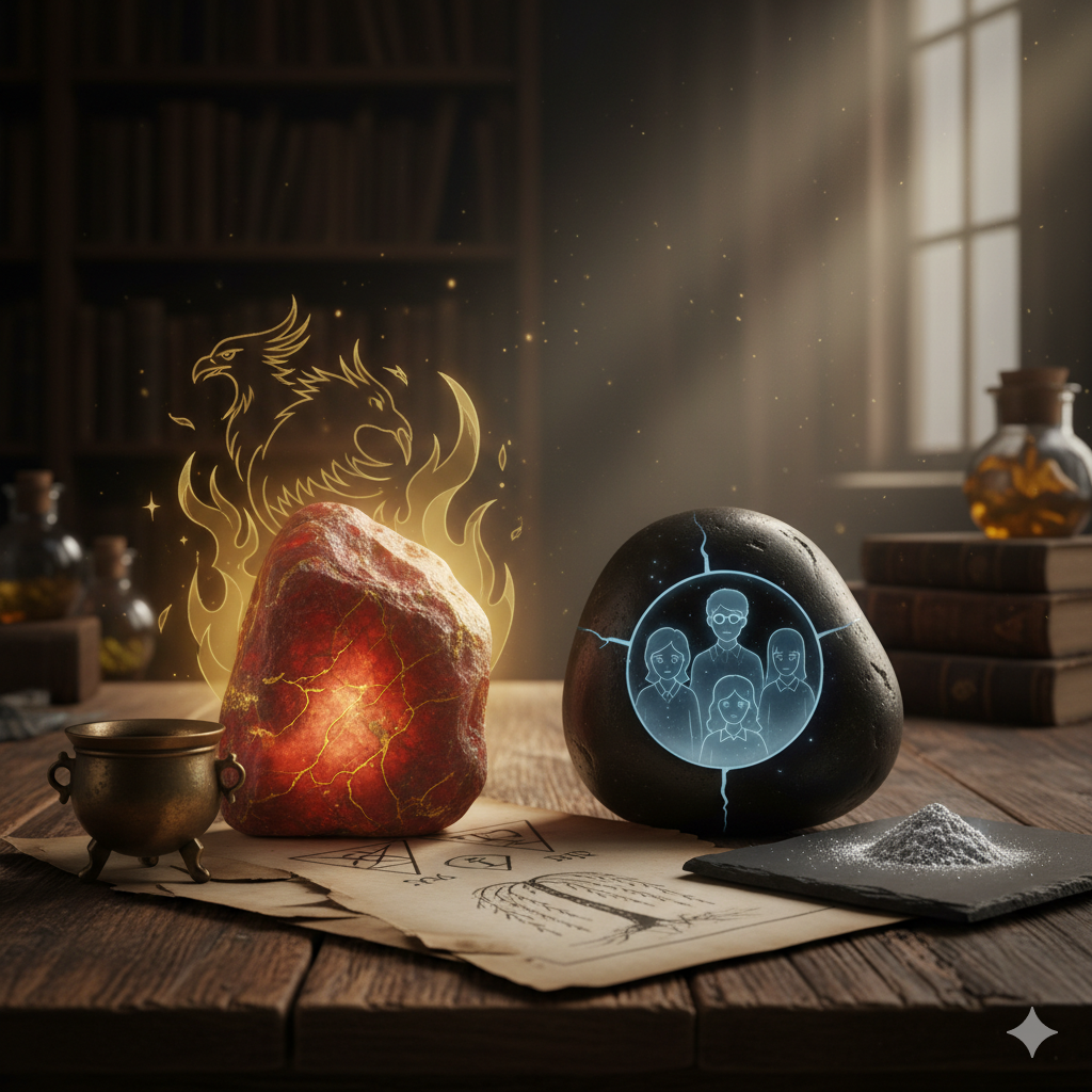 Read more → : The Two Stones: Alchemy, Grief, and the Meaning of TransformationExploring the symbolic depth of the Philosopher’s Stone and the Resurrection Stone — two myths that mirror humanity’s longing for transcendence and reconciliation with mortality.
